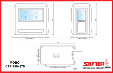Safter Mobo ekonomik kabin fiyatları, kaliteli hammadde kullanımı, seri üretimi ile tüm kapalı alan ihtiyaçlarınız için ergonomik, opsiyonel, yüksek dayanımlı ve ekonomik çözümler sunmaya devam ediyor. Kiosk büfe kabin 150x270 modelimiz müşterilerimize ekonomik, çevreci, ileri teknoloji, geniş kullanım alanı sunmaktadır. Polyester büfe kabin 150x270 modelimiz hızlı nakliye süreci ve hızlı kurulumuyla saatler içerisinde kullanıma hazır hale gelmektedir. Mobo büfe kabin 150x270 modelimiz kesinlikle pas tutmaz, yıkanabilir, uzun yıllar bakım gerektirmez. Modern ve estetik dış görünümü sayesinde çevreyle uyumludur, insan sağlığına herhangi bir yan etkisi yoktur. Safter Mobo Modüler Kabin Sistemleri tüm kabin modellerinde kaliteli ve yüksek dayanımlı olarak üretilmektedir. Sıradan kabin markalarının aksine en kaliteli hammadde kullanımıyla sektörünün en dayanıklı, en sağlam, en uzun ömürlü kabin modelleri Safter Mobo’da. Tüm kabin modellerimiz yerli üretim olarak üretilmektedir. Güvenlik testleri yapılarak fabrikamızdan çıkan kabin modellerimizin elektrik tesisatları ana akım şebekeye bağlantı yapılarak kullanıma başlanabilmektedir. Satış sonrası teknik destek, takip ve müşteri memnuniyeti ile satış sonrası süreçte de yanınızdayız. Tüm kabin modellerimiz için 7/24 web sitemiz, e-posta adresimiz ve telefon ile bilgi alabilirsiniz. Siz de kabin ihtiyaçlarınızda sektörünün lideri Safter Mobo’yu tercih edin. Farkı fark edin.