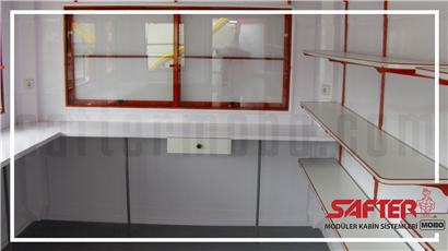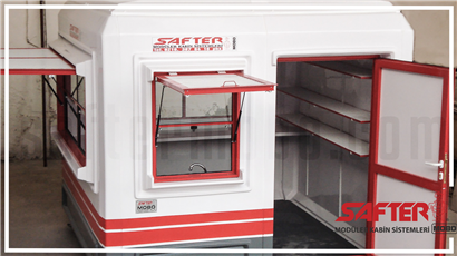 Safter Mobo kabinler, camelyaf takviyeli polyester(CTP) malzemeden çift cidarlı poliüretanlı sandviç panel olarak üretilmektedir. 40 dansite sert Poliüretan köpük paneller arasına enjekte edilerek yüksek kalitede ısı ve ses yalıtımı sağlanır. 60 derece sıcaklığa -50 derece soğuğa dayanıklı olan Mobo kabinler monte ve demonte özelliklidir. Safter Mobo kabin sistemi dayanımı yüksek, kolay temizlenir ve uzun ömürlü yapıya sahiptir. Safter Mobo büfe kabinleri yüksek kalitede ısı, ses ve su yalıtımı sağlamaktadır. Safter Mobo büfe kabinleri TSE belgeli ve tescilli olup iki(2) yıl garantilidir.
